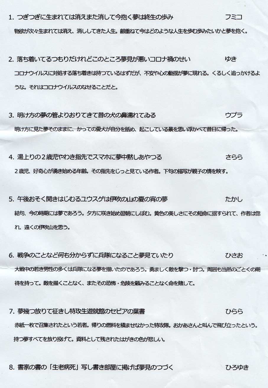 鑑賞詠草 「夢」