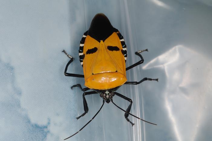ジンメンカメムシは東南アジアに生息しているらしい。人の顔のように見える斑点があるのだが、なぜそのような擬態をしているのかは謎らしい。