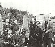 平成七年十一月二十五日、私の調査研究「戦没農民兵士の歌=万木宗良小伝」の完成の墓前報告会を 戦友の勧めもあり計画したところ、遺族、戦友、アララギの歌人が出席された。万木家は浄土真宗大谷派慈敬寺の 檀徒である。私も同じ大谷派の檀徒なので導師を務めてお経をあげさせていただいた。湖北時雨の日であった。 (当日の写真輪袈裟を掛けているのが筆者)