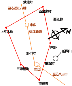 蒲生野は近江八幡から八日市周辺までの田園地帯で、その中央に船岡山がある。文明一行のたどった道順を まとめる。